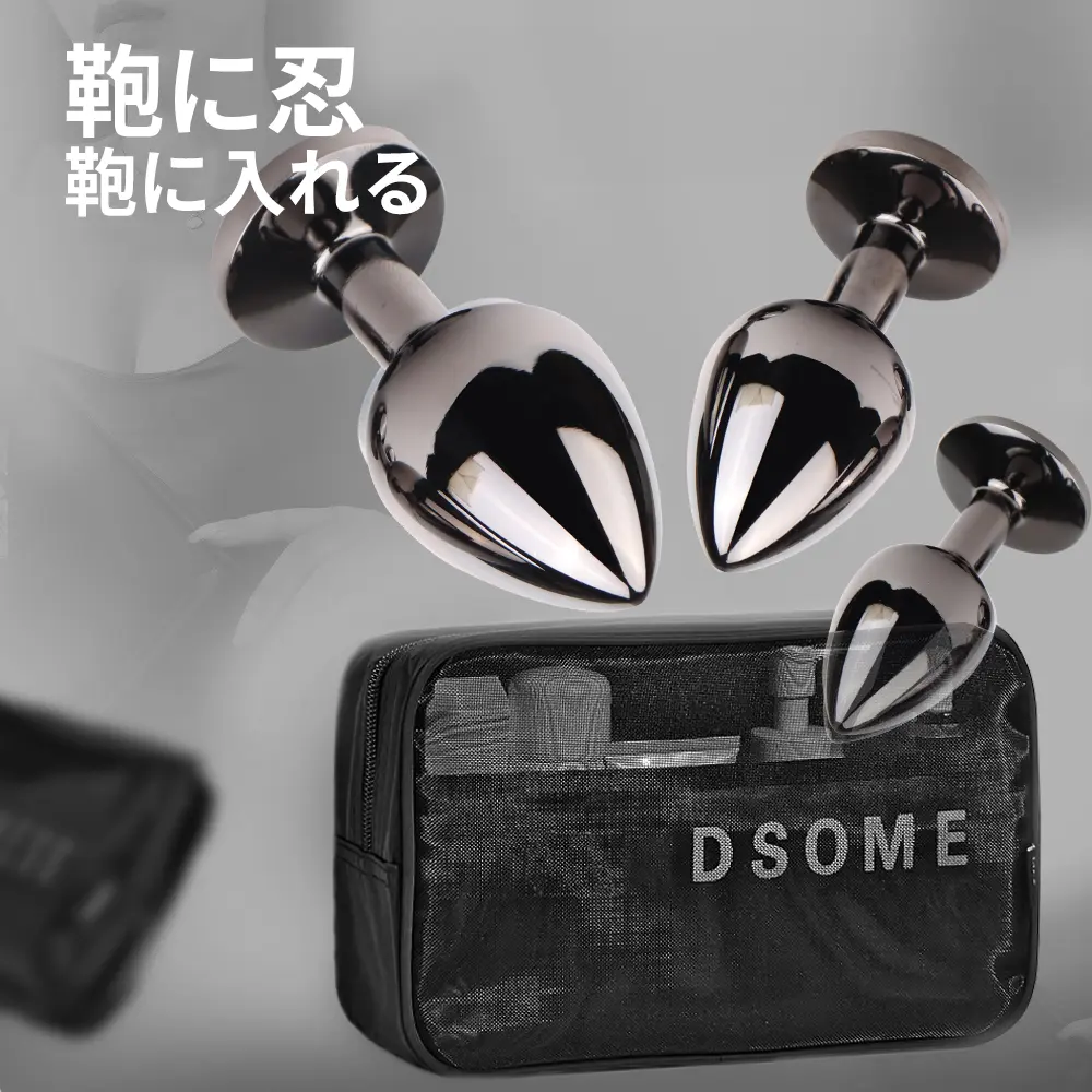 金属製のアナルプラグセットです。表面はなめらかで入りやすく、アナルを過度拡張することはありません。