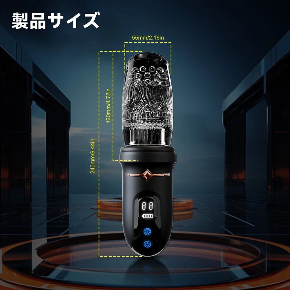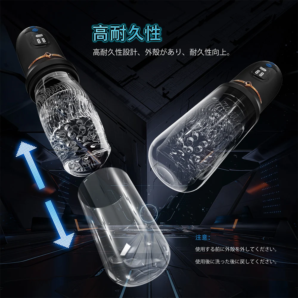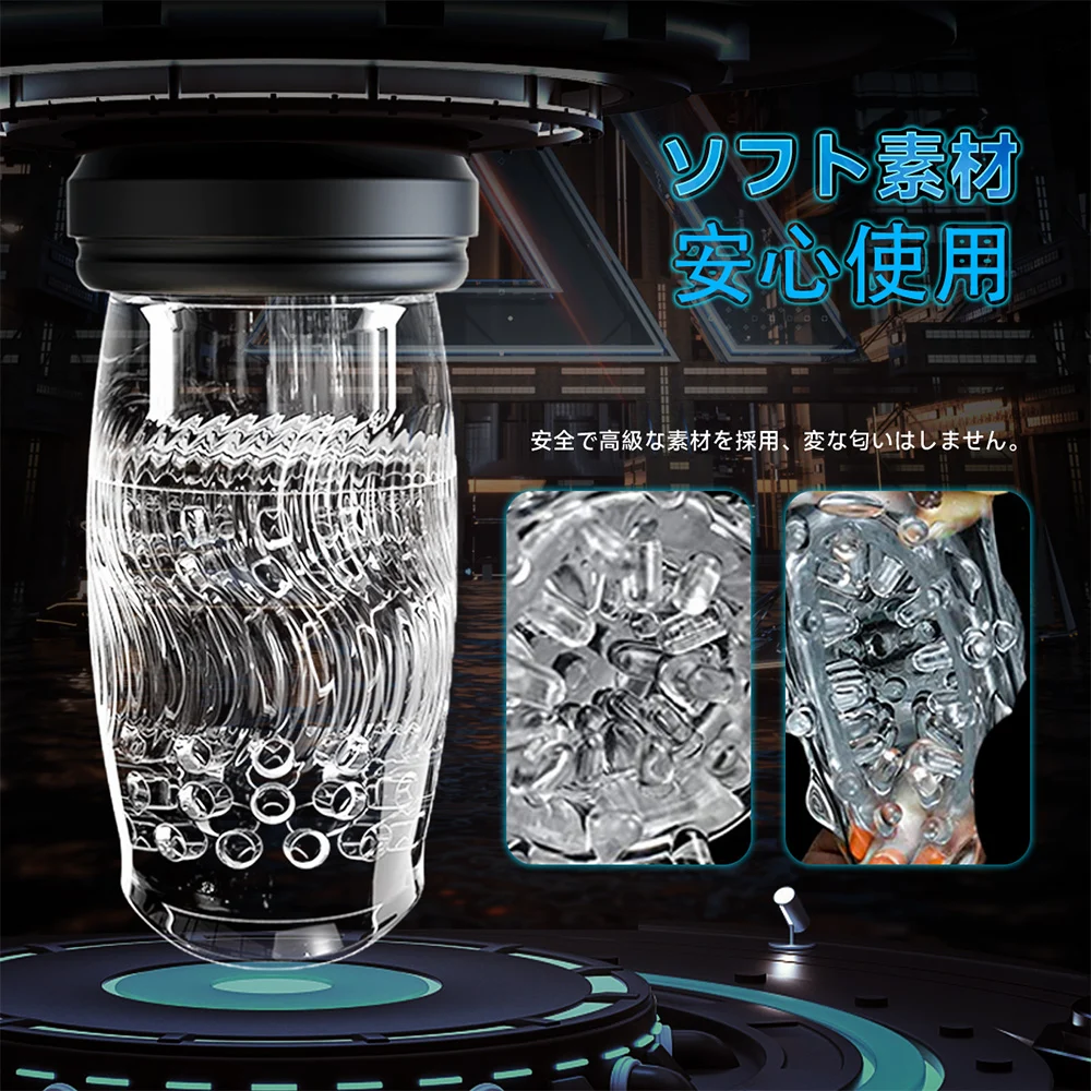 電動オナホールの中のキング!店長一押しの名品、同類製品よりずっと強い性能を持つ不思議な電動オナホールです。まずはカップの本体をご覧ください、青いボタンと黒いディスプレイはテクノロジー感があり、下のは金色の印が飾ってあります、全体にはパートナーバランスがとっていてカッコイイです。これに注目したあなたもセンスいいですね。そしてまた下をご覧になってください、まず目に入るのは透明な蓋です。蓋の存在目的はこの弱いインナーホールを庇うためです。蓋を外してインナーホールを直接触ってみてください、インナーホールは高級素材を採用し、人工で作られたとおもわないくらいに柔らかいです。その中にあるのは無数のイボ、イボたちは一周一周回って並んでいます。想像してみましょう、ペニスが入ると一気にイボに囲まれます、そして入るたびにイボの数が増えていき、インナーホールも狭くなります。イボたちが360°立体的にペニスを擦ります、上にある一番太いやつは亀頭をキスするみたいにインナーホールがピストンするたびに亀頭を激しく刺激します、それが最高に気持ちいいです。