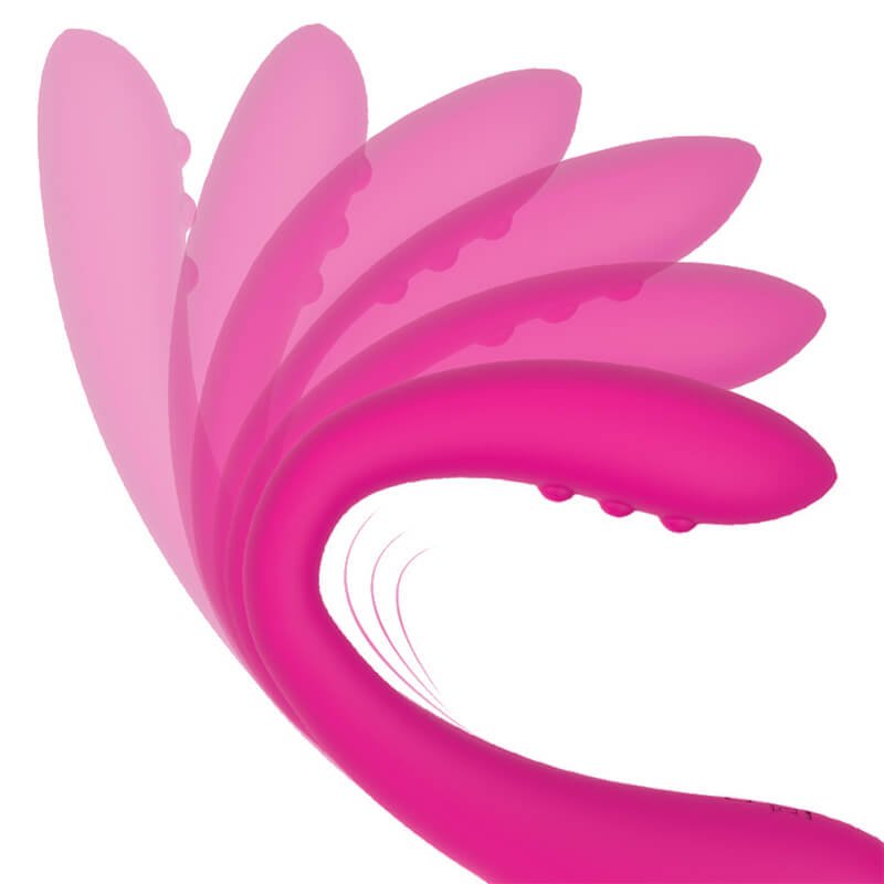 Clare両端振動電動バイブ。革命的な両端振動バイブ、両端使用可能、よって、使用方法はたくさん。例えば電マとして使うも、ローターとして使うも、バイブとして使うも、普通のバイブとして使うも、双頭バイブとして使うも、その20㎝の長さと自由に曲げる接続部分はそのすべてを実現する!