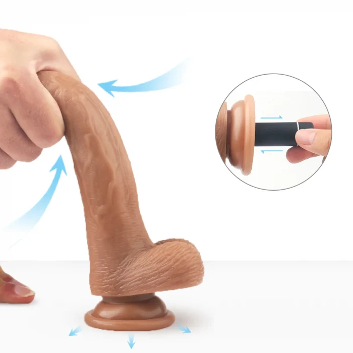 Croodsディルド。本体はペニスを完全に再現したディルド、亀頭から血管まで完全に複製 人肌と全く変わらない色、睾丸まで作られ、視覚的インパクトを活用した。 そして強力な吸盤があって、壁、ベッド等にしっかり固定できる、騎乗位の練習になる! 最も重要なのは、このディルドの下にある振動部は着脱式、取り外すことができる もしディルドではなく、ローターを使いたい時は取り外してローターとして使える。 振動部を取り外せばディルドは丸洗い可能、清潔保持も簡単し、普通のディルドとして使える! 高級シリコン製なので、肌触りがよく、ぷにぷにしてる、どんなに曲げても壊れない 振動は9種があり、リモコンで操作できる、騎乗位の時も扱いやすい。
