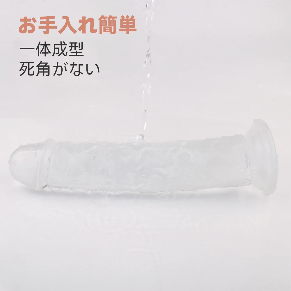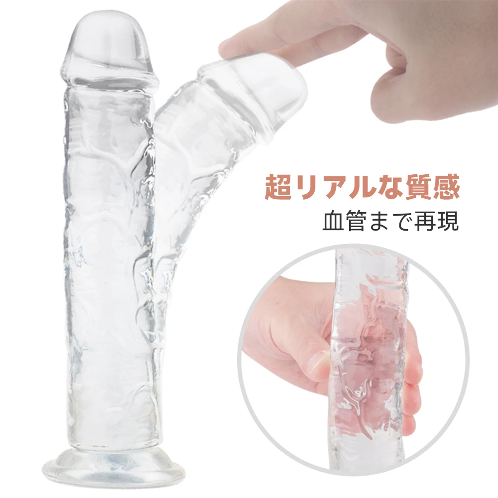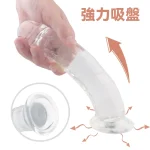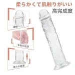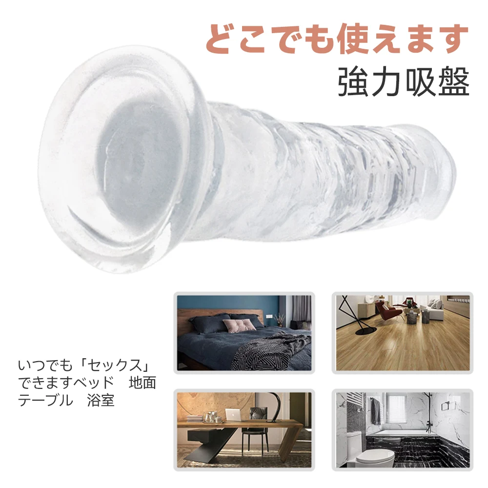 吸盤式の透明ディルド。強力な一体成型吸盤が付き、使用シーンが制限されない、ベッド、地面、壁、浴室、テーブル等に設置して好きなように使えます。