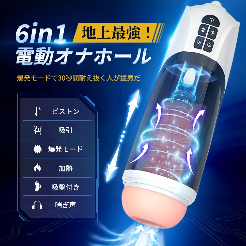 T S2 最強6in1フェラホール ピストン・吸引・加熱・爆発モード 強力吸盤付き 喘ぎ声 電動オナホール