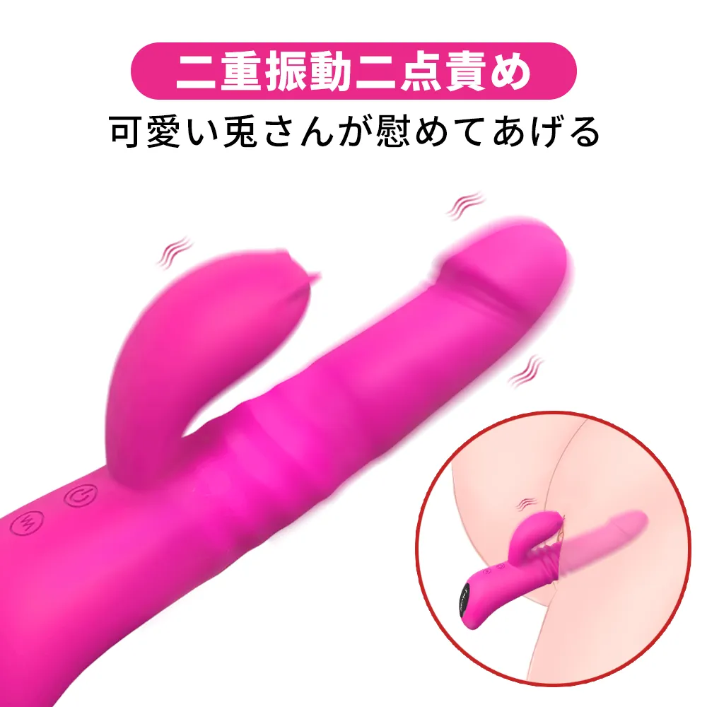 可愛い兎が付いており、挿入する時にクリとGスポットを同時に責めて、他のバイブが比べない程の二重刺激を与えます。