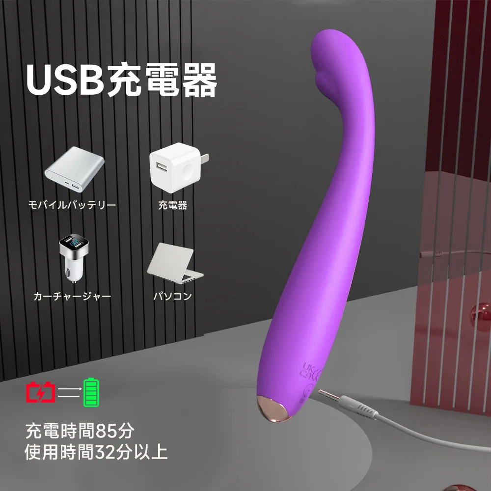 Gスポット刺激、バイブ全体はちょうどいい角度に曲げていて、Gスポットに入るだけでGスポットに当たります。高頻度の振動はGスポットに麻痺させるみたいな刺激を与えます。