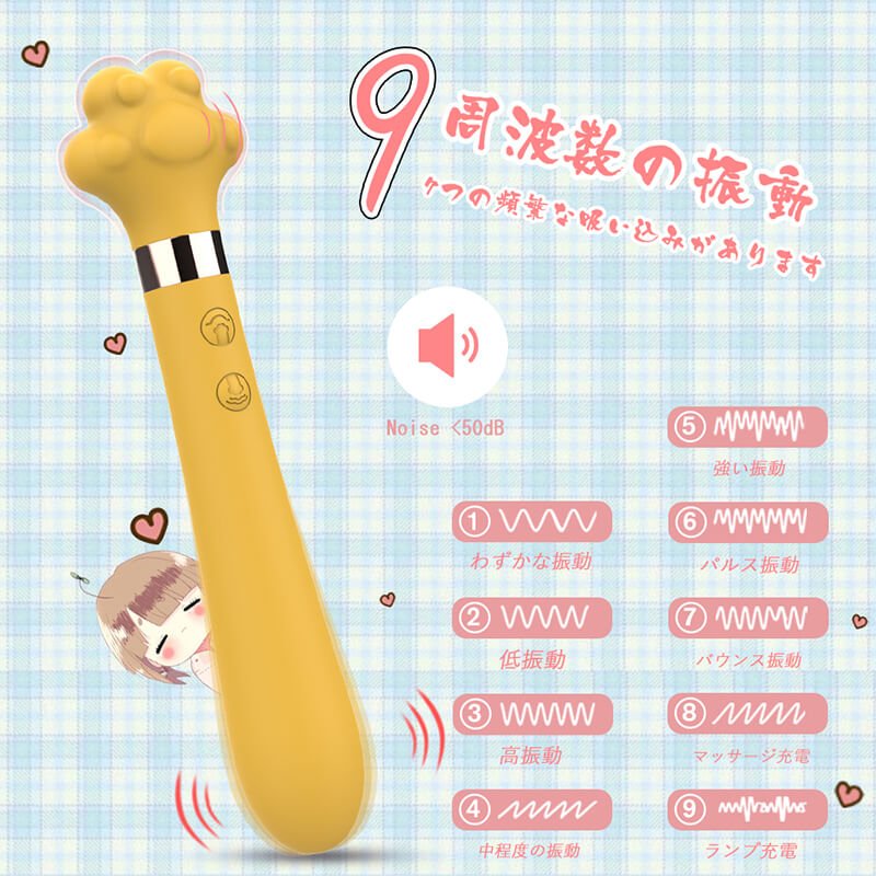 9種類の振動モードと7種の叩きモード搭載!クリ刺激と乳首開発用なら可愛い猫足で叩く、Gスポット刺激とアナル開発ならバイブで振動する、どっちでも強力、どっちでも気持ち良すぎる!そしてそのパターンは自由に切り替える!好きなようにすべての性感帯を弄ってみよう!