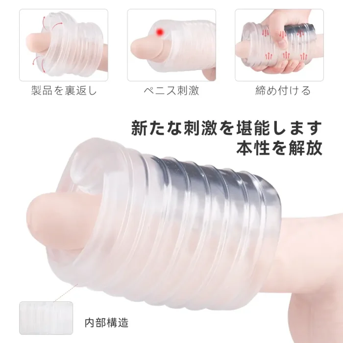 カップとバイブの二つの部分で出来ています。本体のカップ部分は透明で、高品質TPE材質で作られました。