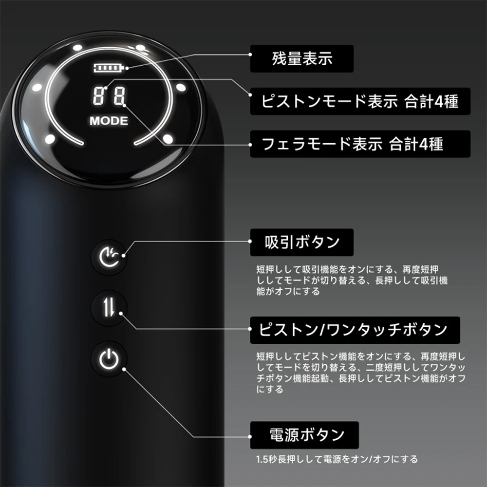 六つのポイント、どっちも嘘の欠片もなく本物です。振動ピストン吸引三位一体の究極電動オナホール。
