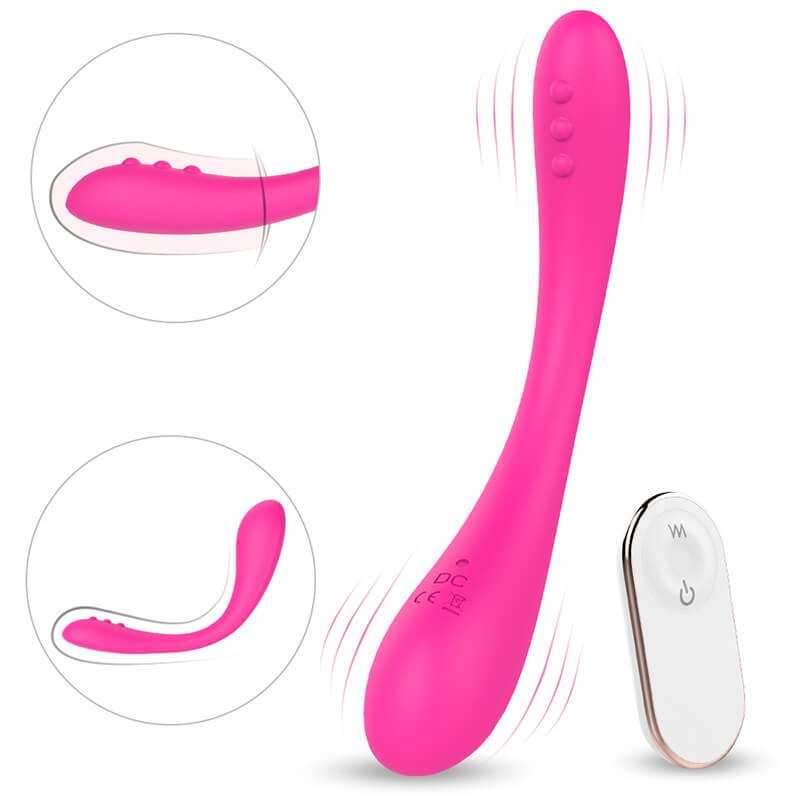 Clare両端振動電動バイブ。革命的な両端振動バイブ、両端使用可能、よって、使用方法はたくさん。例えば電マとして使うも、ローターとして使うも、バイブとして使うも、普通のバイブとして使うも、双頭バイブとして使うも、その20㎝の長さと自由に曲げる接続部分はそのすべてを実現する!