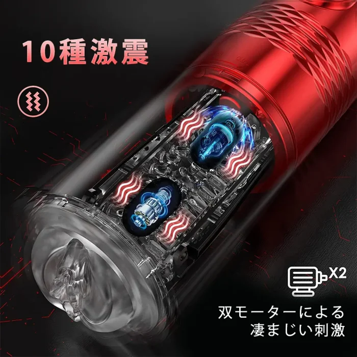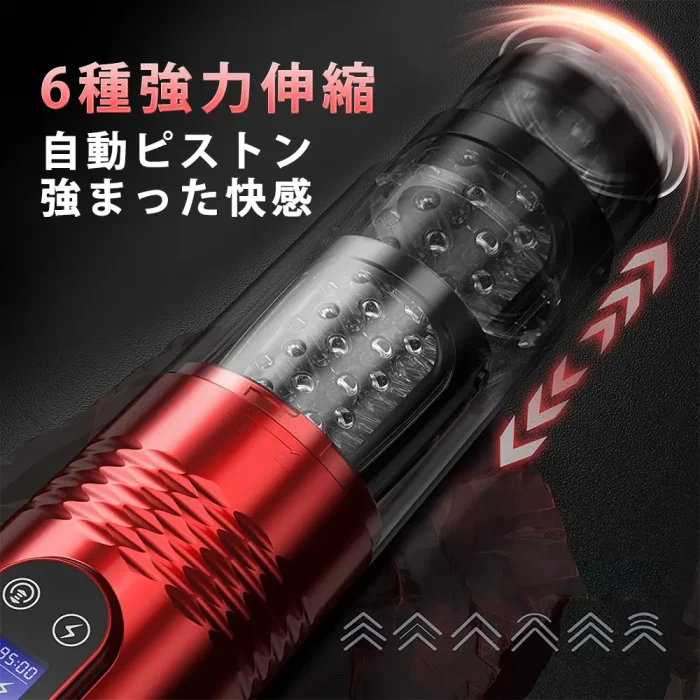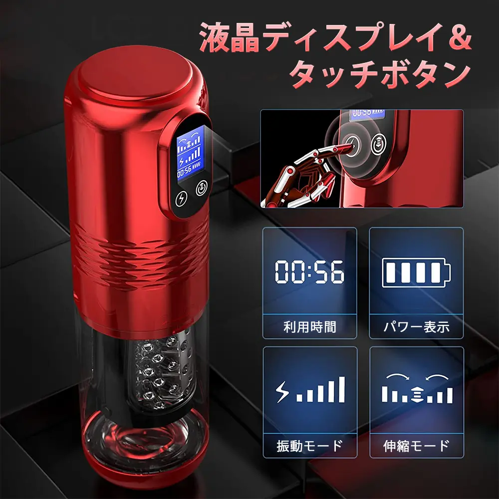 赤戦神 – 10種振動 6種伸縮 計時 タッチスクリーン 電動オナホール