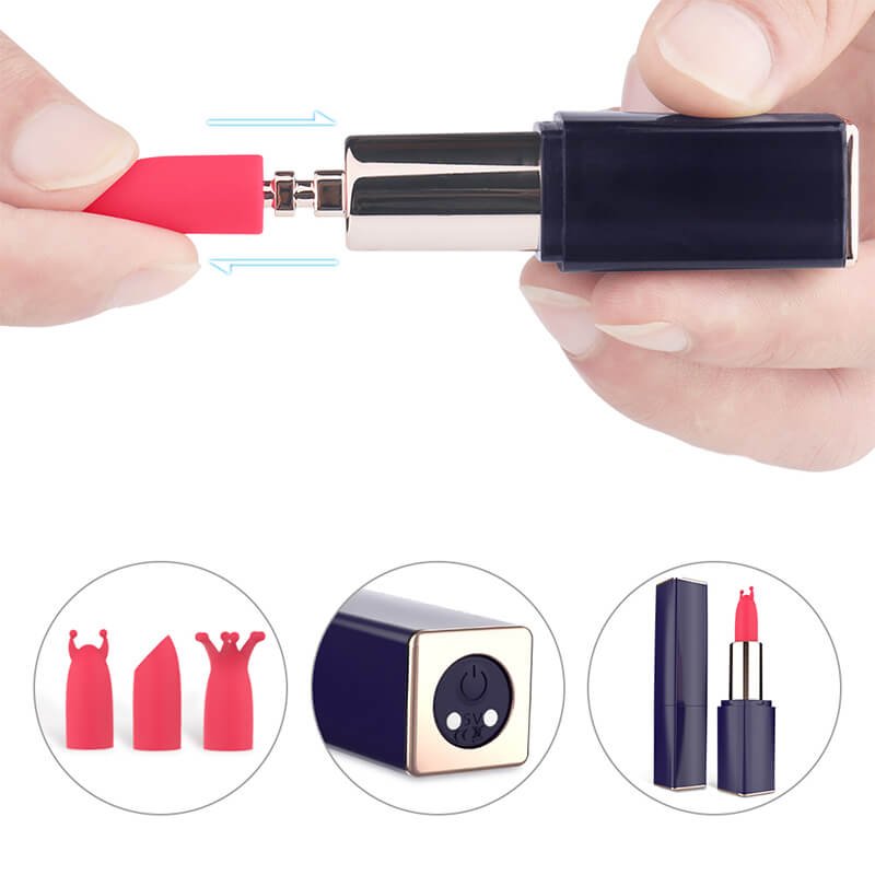 Lipstickはクリ刺激と乳首刺激の専門家、九種の振動モードが搭載された、刺激もそれぞれ違う、乳首とクリに秘密の喜びをいっぱい与えよう!そして3種の頭部による刺激もそれぞれ違う、3種の頭部*9種類の振動モード=27種の刺激、超買い得!