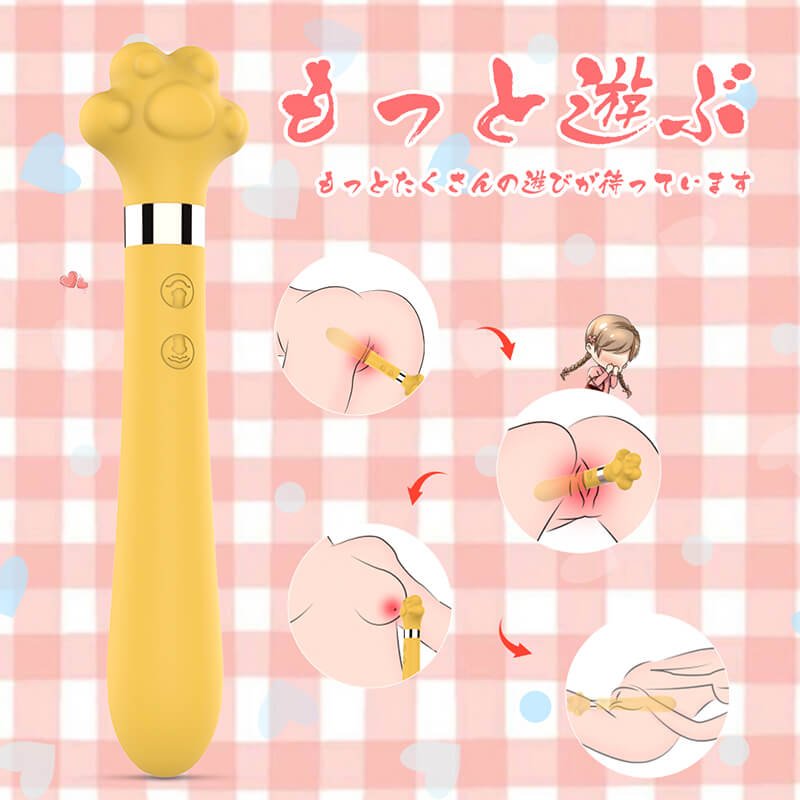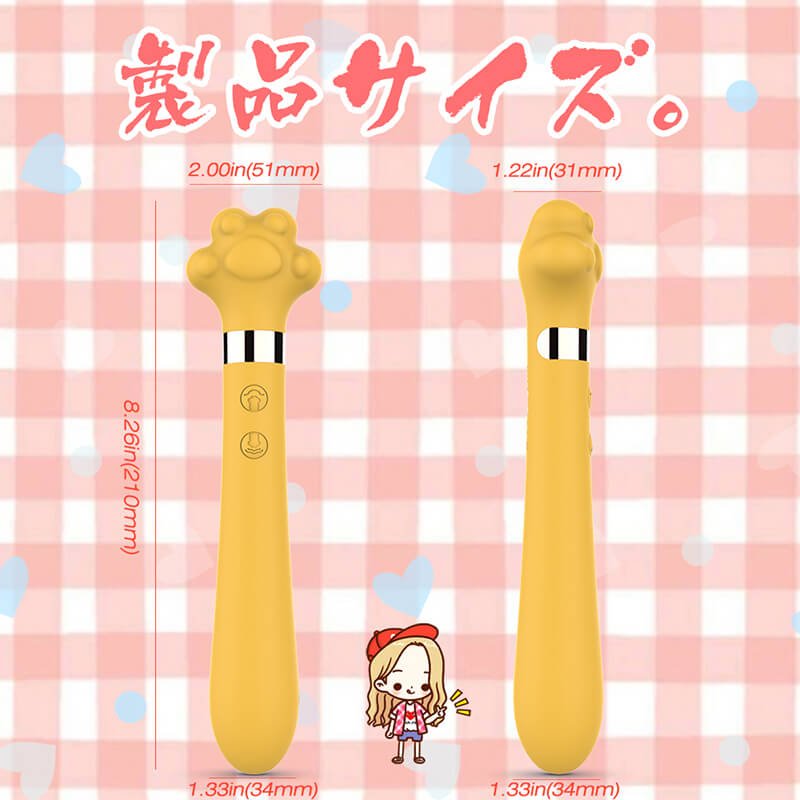 Meow猫足型バイブ。可愛い猫足型バイブ、猫さんのぷにぷにする足みたいな外形は可愛すぎる、ちっとも猥褻感がない。棒の部分はバイブ、34mmの直径はアジア女性にぴったり、一番感じられるサイズ!そして猫足でクリや乳首を刺激することができる、その足はやんちゃな子猫みたいにあそこにパンパンする、面白くて気持ちいい。