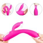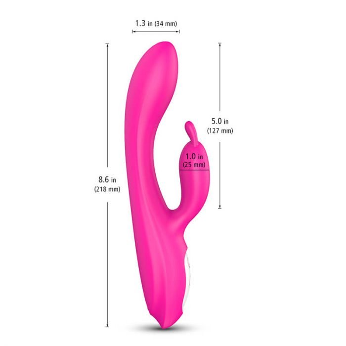 先端の電動ディルドは9種類振動、子機ウサギ耳にも9種類振動を搭載される。パワフルな振動は女性の敏感部を強力に刺激する。もちろんウサギ耳もクリに挟んで刺激し、中イキと外イキを同時に達成する。