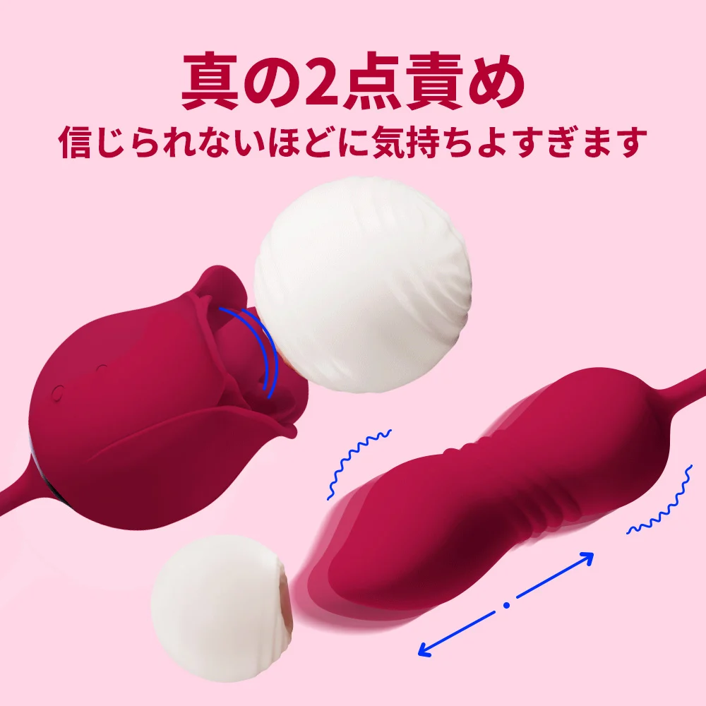 Rose Proは舌舐め部分はバラのように設計され、使用する時そんなものに抵抗できない。そして、綺麗の割に人工舌は柔らかくて刺激は強い。接続部分は弾性力が抜群でいっぱい伸ばせる、あそこを弄りながら乳首を舐めることもできる。伸縮部分は細めにデザインされ、未開発の方でも気軽に使えるし、長さも十分なので、gスポットにちゃんと当たれる。