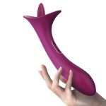 細くて長い流線型バイブ、上には大きい開口と誘惑的な舌があって、下には流線型デザインのバイブ、舌舐めと挿入振動両用できる、舌舐めは前戯に使うと濡れやすい、本番に使うと外イキやすい。バイブは前戯に使うと刺激が強い、本番に使うと潮吹きも簡単に達成する。